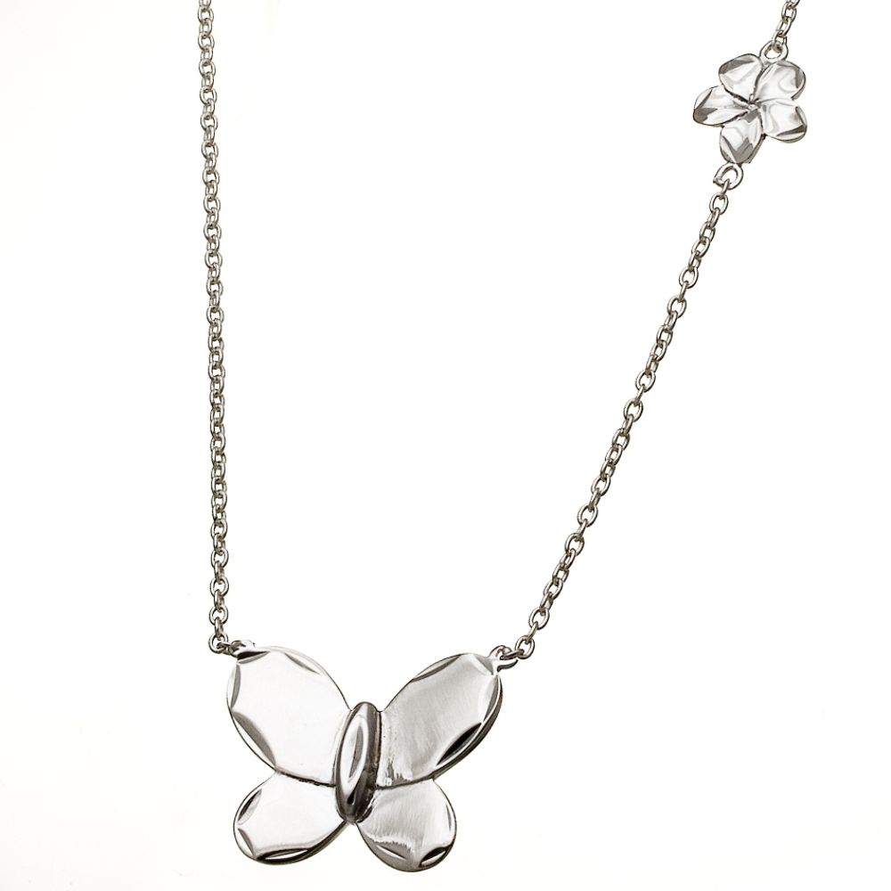 Silver Earth Sterling Silver Butterfly Necklace With Flower Side.